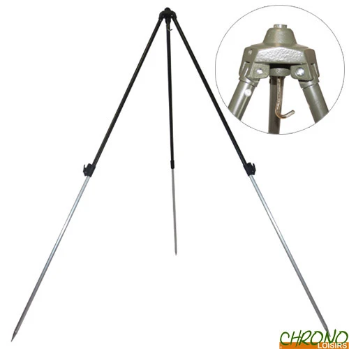 Il est doté de pieds réglables qui vous garantiront une adaptabilité parfaite quelque soit le terrain sur lequel il est installé et sa tête centrale est munie d’un crochet conçu pour y accrocher votre peson.